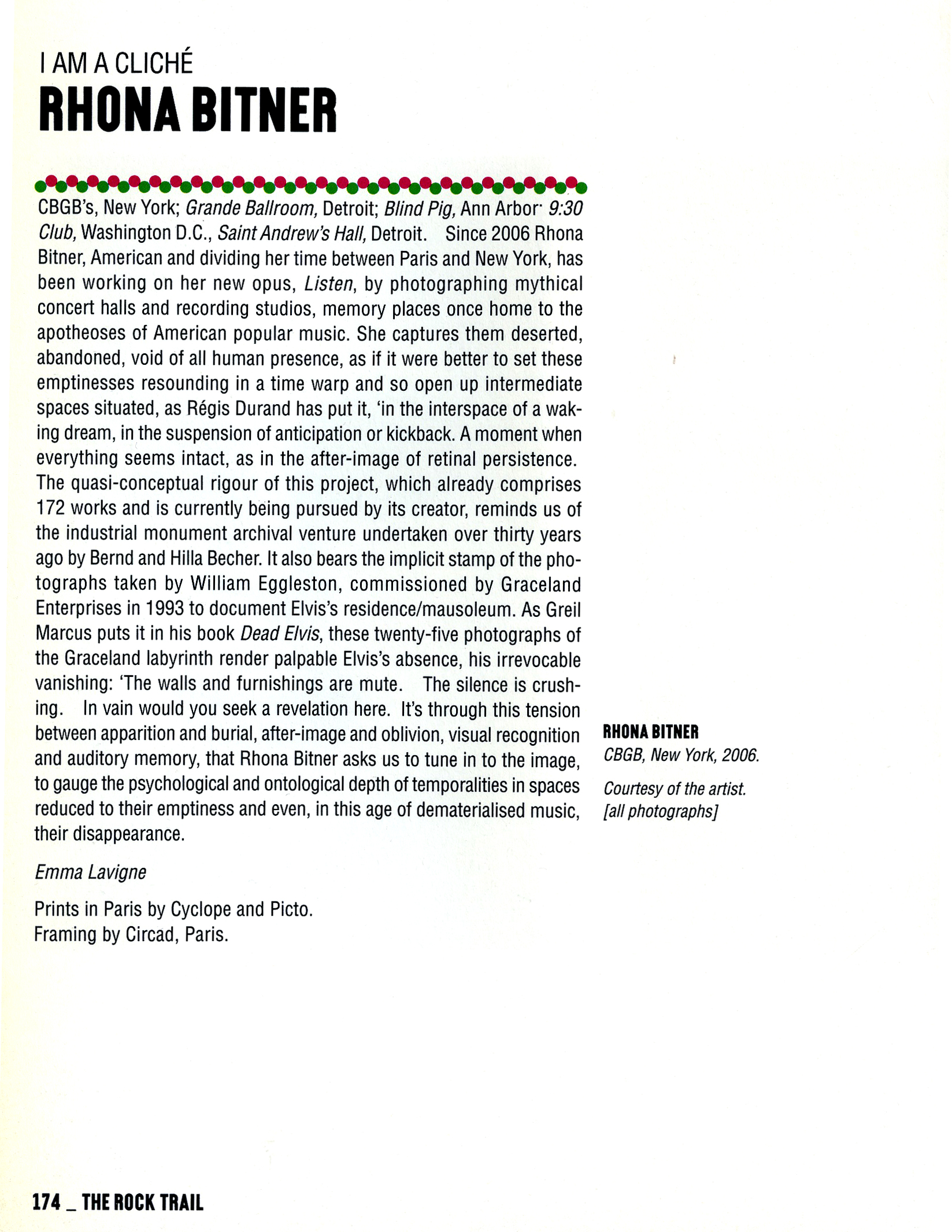 | 2006 | ‘Rhona Bitner : Stage’, Regis Durand: Galerie Xippas+BFAS-Blondeau Fine Art -pdf |